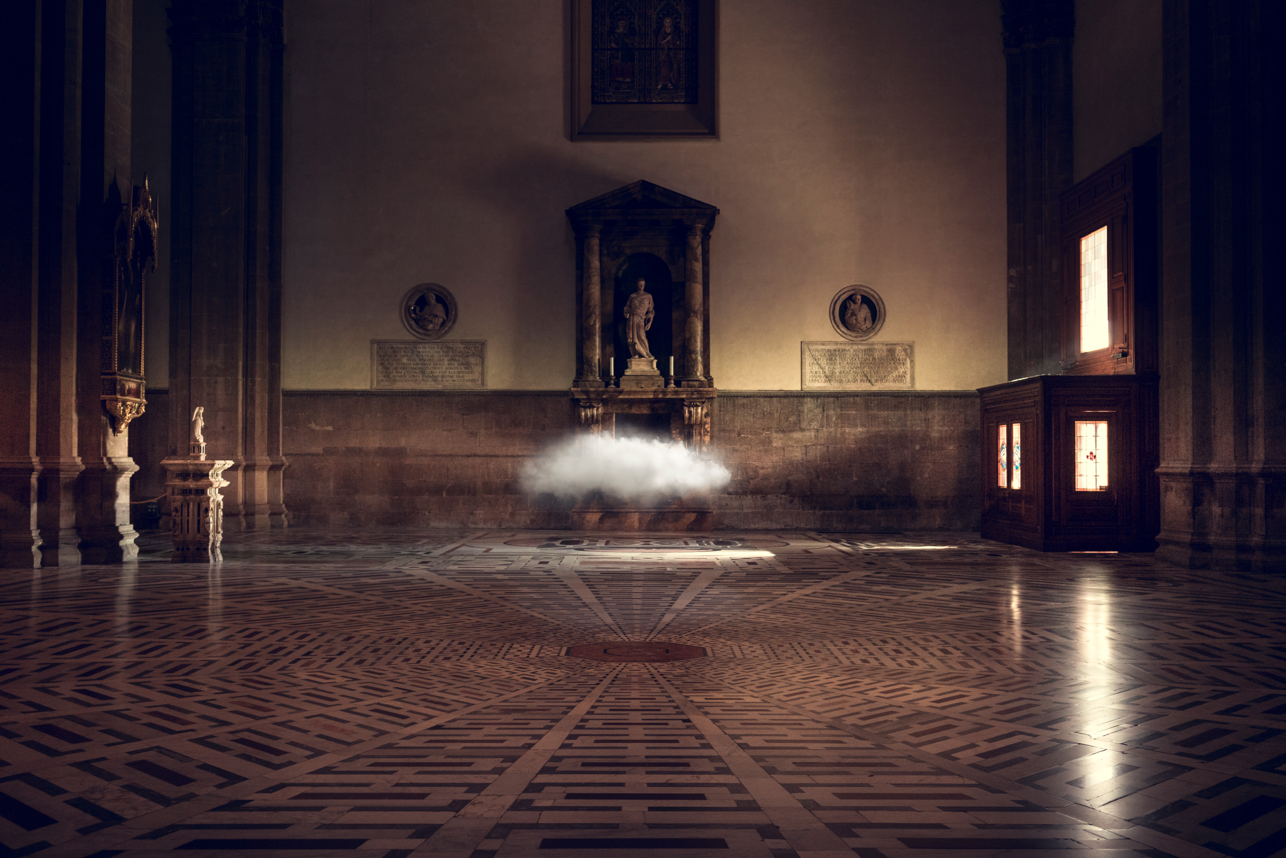Hovering at human height, the surreal cloud catches our curiosity and lies open to interpretation, its mere presence steering the dialogue towards something fantastical, poetic and intriguing.